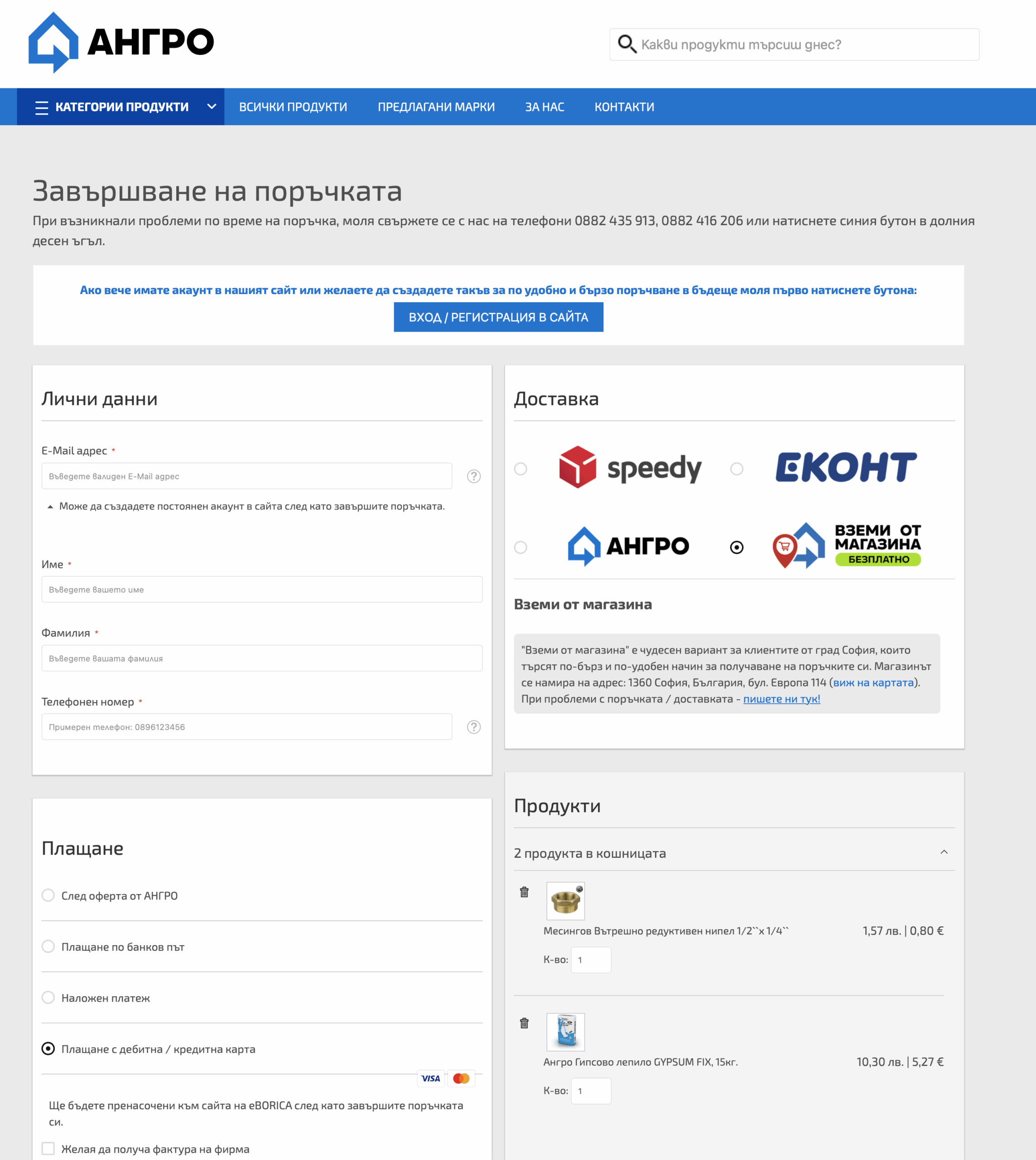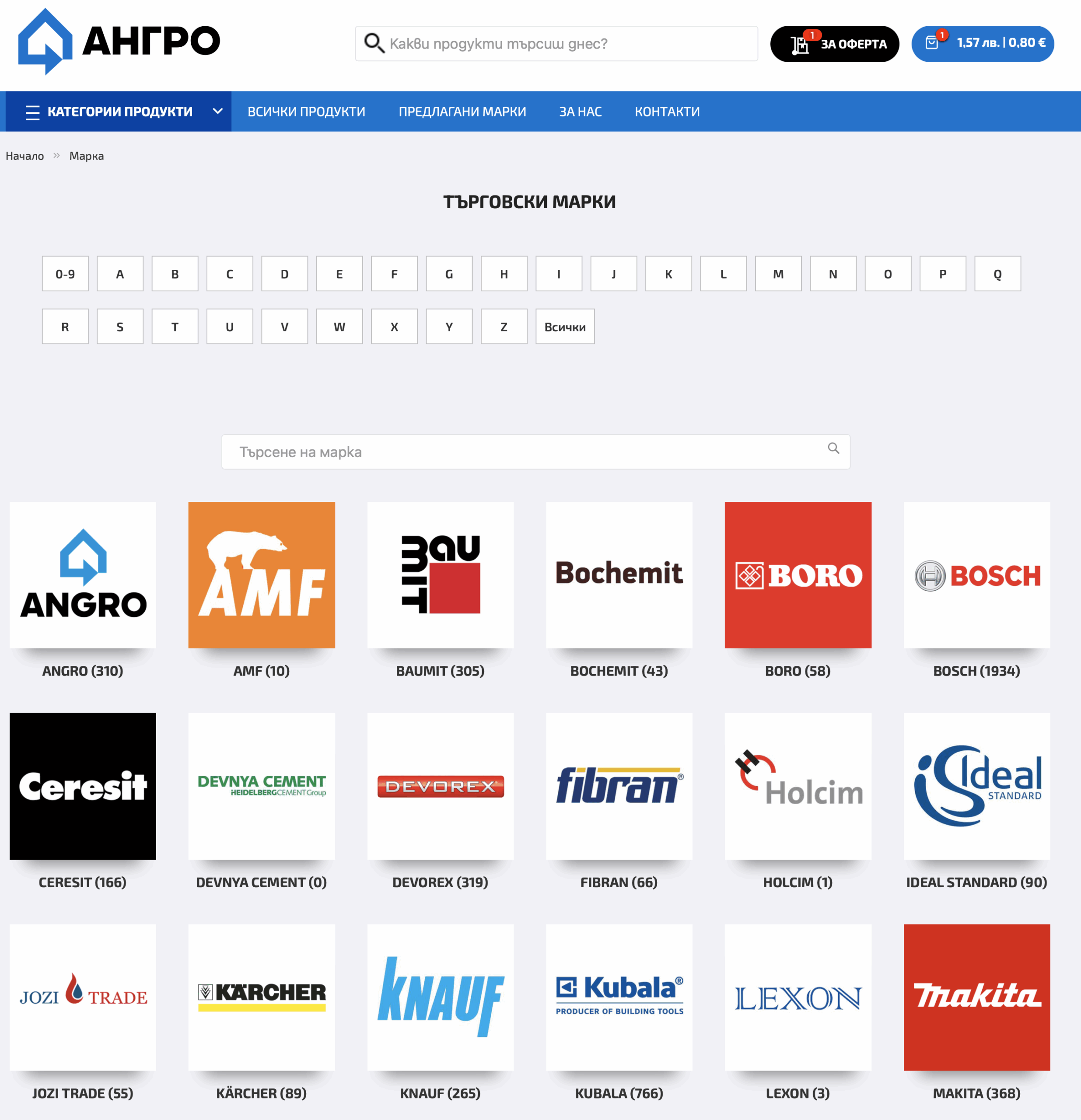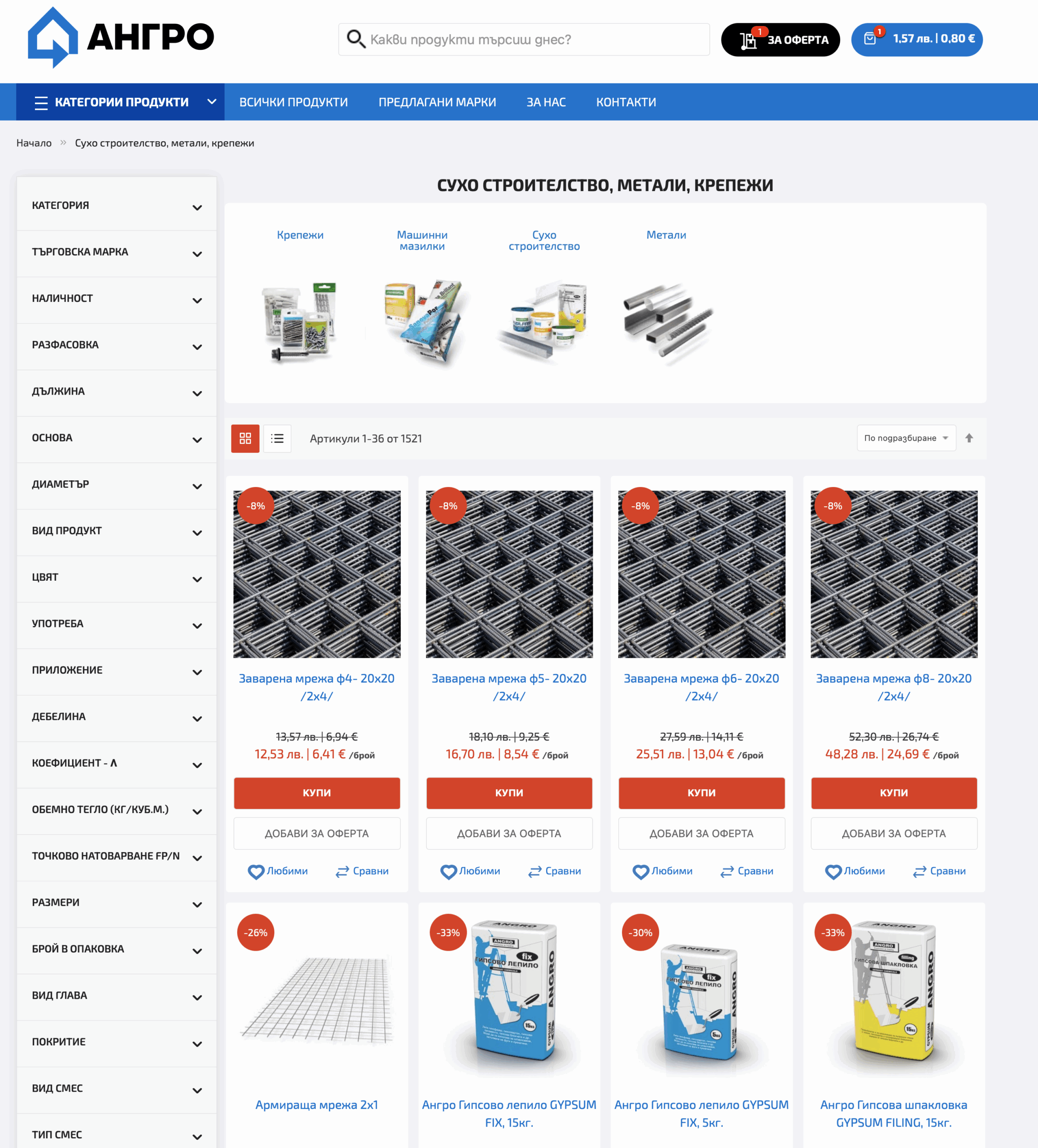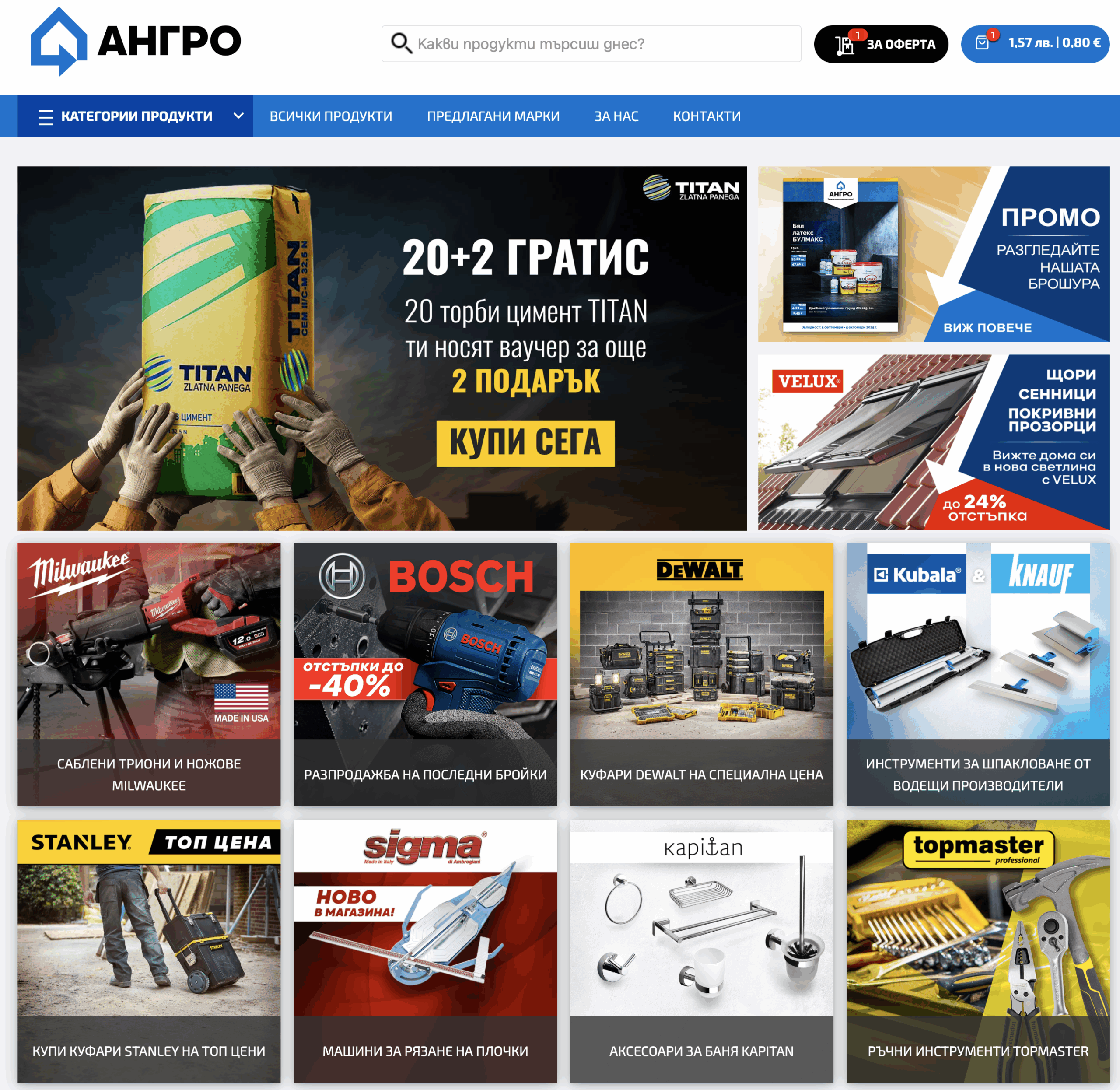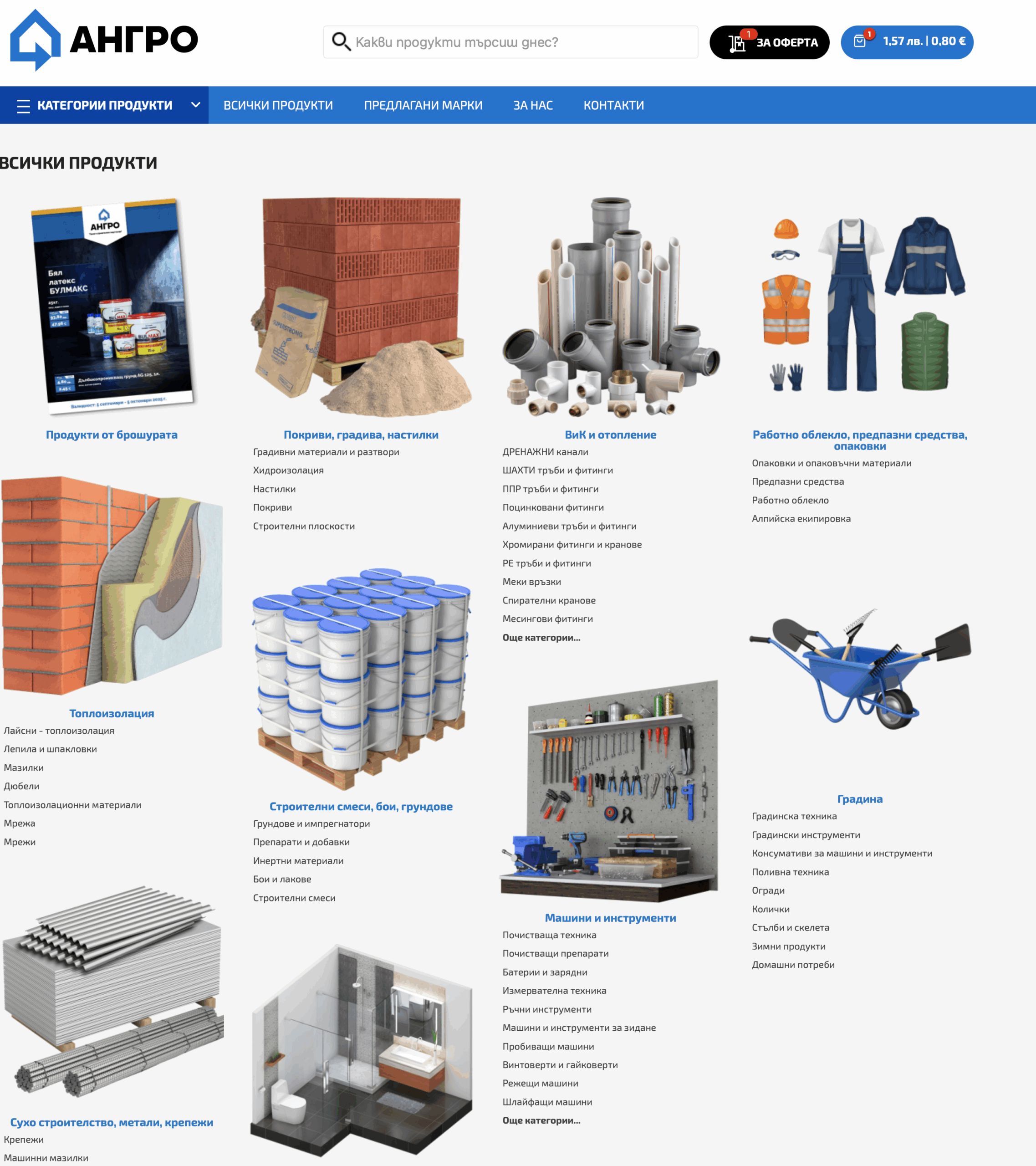Дружество АНГРО има дългогодишен опит в търговията и производство на строителни материали. Създадена през 1991 година, към момента фирмата предлага и поддържа големи складови количества от широка гама продукти. Имат заведени над 20 000 артикула от различни категории: топлоизолация, груб строеж, инертни материали, покриви, бои и мазилки, обзавеждане за баня, електроинструменти и други.