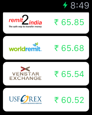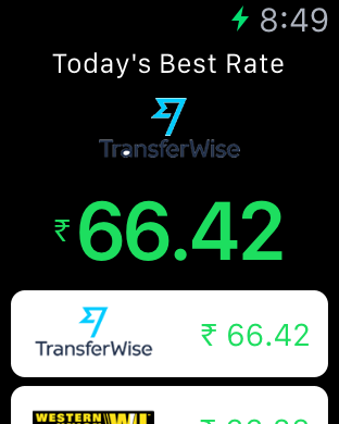 CompareRemit iWatch App iWatch App Path2USA are one step ahead once more with the new iWatch companion app to their already developed iOS and Android apps. The app automatically syncs itself to the latest currency pairs and shows the best available rate for the moment.