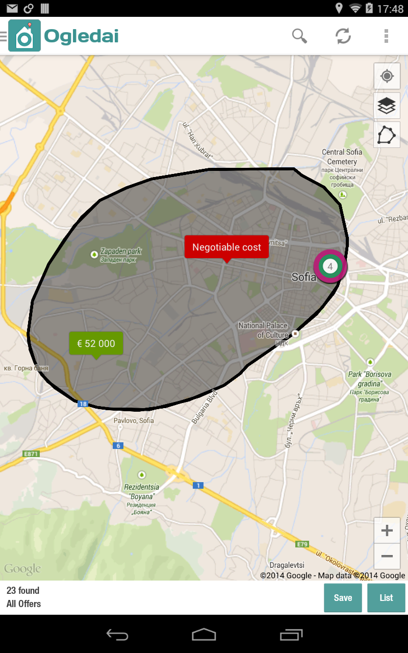 – Dynamic google maps – searching, filtering, saving filters, drawing on the map