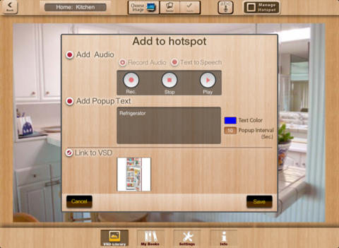 Scene Speak is versatile customizable app that provides a framework on the iPad to create interactive visual scene displays and social stories. Scene Speak allows an image to be edited with active “hotspotsâ€.